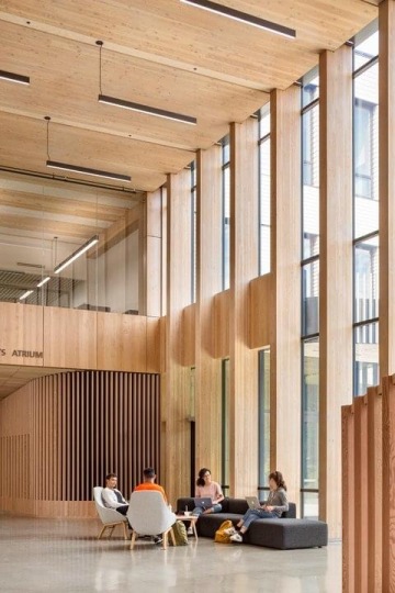 And how our spaces—some of those are natural, some of those are constructed—kind of shape that. So I think within the building, in those central spaces, connection to that warmth of material is one really strong aspect of the timber. The other is actually more hidden and quiet, and that's the structure of the main houses. So in the four quadrants, actually the vertical walls are CLT. And part of this was really looking at a solution that would endure for, you know, hundreds of years.