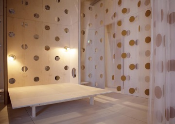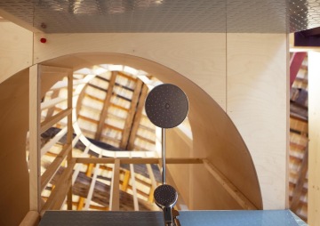 So, an important part of the installation is also to invent the new timber system that consists of solid wood planks, and they are connected with dowels. They are environmentally friendly, but also suitable for self building. The inhabitants can design and build the furniture and elements by themselves, but also the walls and ceilings are built of this system. And that system can be very easily locally produced, so it's not the crude industrial system, but a very low-tech, environmentally friendly lock system.