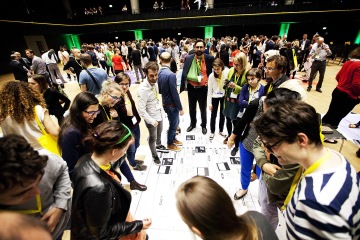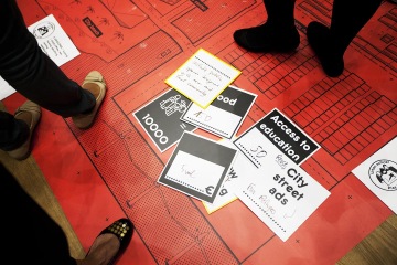 At this year’s reSITE, we decided to try an experiment. We organized a giant board game called “Play the City,” in which participants tried out different professional roles while planning a city. Game designer Ekim Tan from Amsterdam said that it was the first time she involved so many people in the game, which was played on 12 different massive game boards on the floor of the Forum Karlin venue. It has been the biggest game of its type ever organized, led by the game designer, urbanist and architect Ekim Tan.