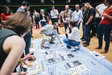 The audience reached reSITE’s broad target across sectors. As typical at reSITE events, the demographic mixed young and old, business, government and civic actors. And, hundreds of people were involved in a giant board game to plan the ideal city, called “Play the City” the largest urban planning game in Europe. Game designer Ekim Tan from Amsterdam said that it was the first time she involved so many people in the game, which was played on 12 different massive game boards on the floor of the Forum Karlin venue.