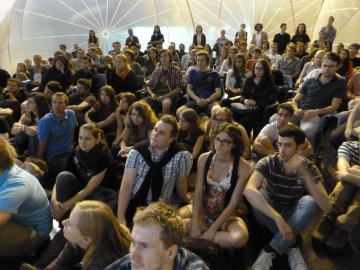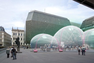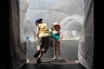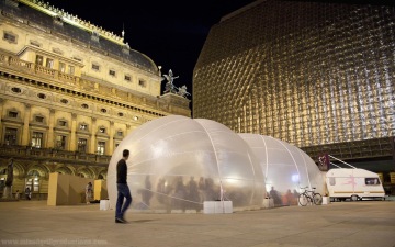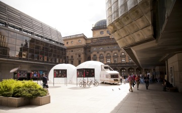 This bubble is more than a huge work of public art or architecture. At reSITE 2012 Festival ROSY the Ballerina, installed from the 25 to 27th of May 2012 in the piazetta of the National Theatre, was used as a pavilion to host design workshops, a dance performance, film screenings, urban games, and design discussions - all free to the public. Our goal was to encourage the general public to debate and discuss public space, and to revive Prague into a more livable, lovable city.The designers were Raumlabor Berlin, a collective of artists from Germany.