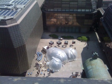 ROSY is a ballerina. She's perfect. She's transparent, she's iconic, cool, and holds 130 people, the exact number that we expect at these events. She was designed in Berlin, she was made in Zurich, and she spent the summer of 2010 in a bunch of parks in London, before coming to the National Theatre in Prague.